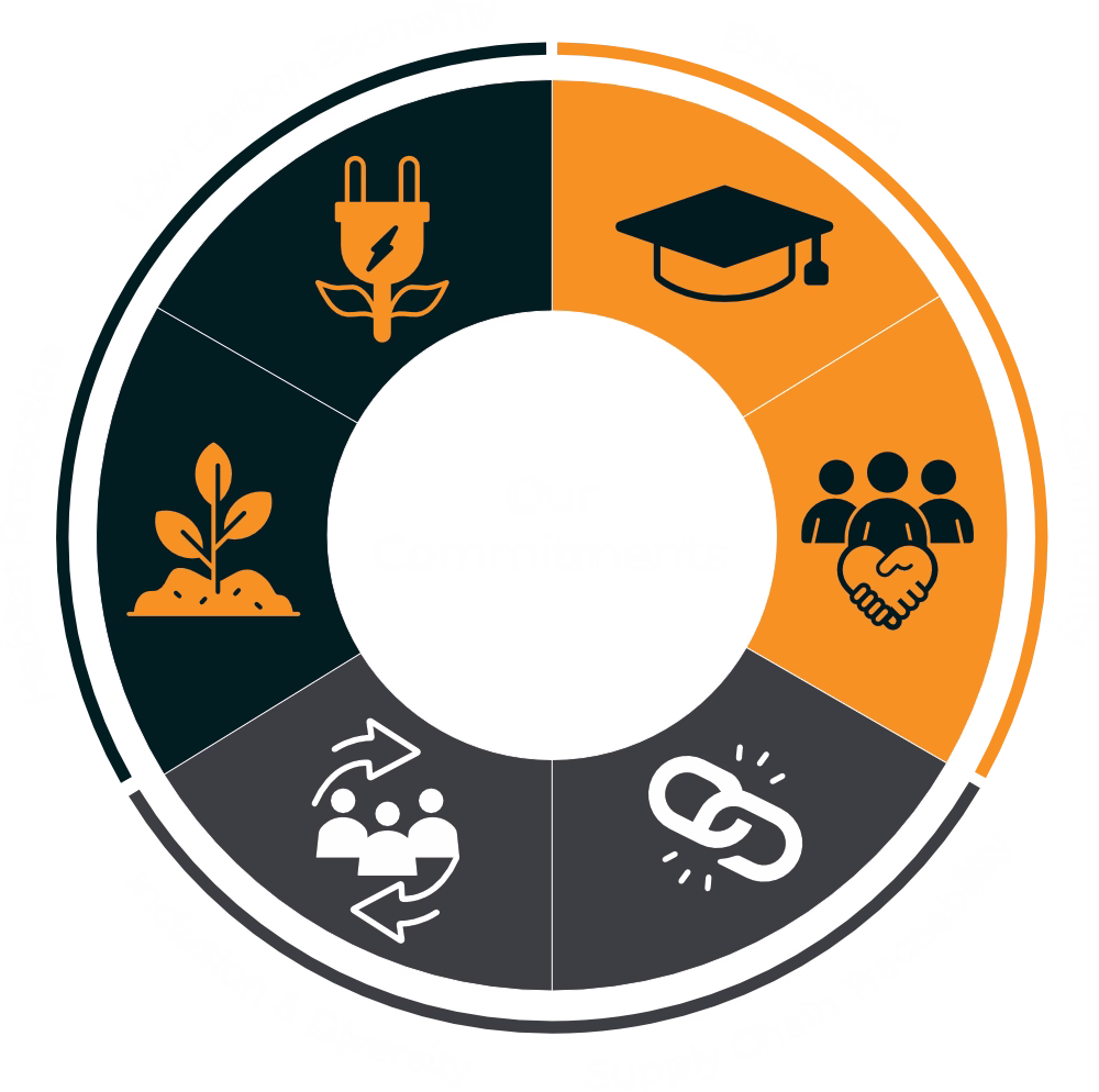 These pillars guide the decisions we make, ensuring we deliver long‑term, meaningful impact for our team, our partners, and the communities we work with.